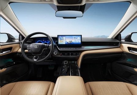 内饰以年轻豪华为主,12.3英寸的液晶仪表盘科技感到位,中控屏界面简洁大方,显示清晰易读;新的座椅样式更佳精致,豪华质感明显提升,舒适性与包裹性也不错,符合凯美瑞中高端B级车的定位。
