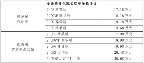 作为一款全球热销的B级轿车,广汽丰田第9代凯美瑞正式上市,率先推出2.0L智能电混双擎和2.0L汽油版两大系列,市场指导价为17.18万至20.68万元,后续将公布2.5L智能电混双擎系列价格。其中,2.0L智能电混双擎17.98万元起,合资B级混动轿车首次进入17万元区间,2.0L混动顶配仅为20.68万元。
