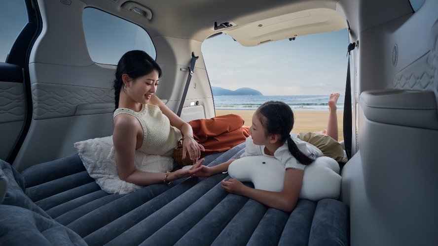 当面对多口之家出行,风行星海V9提供的宽适大空间更是满载一家人的幸福时光。前排至尊头等舱,全方位提供智享尊贵体验。二排百变娱乐厅,12向可调豪华航空座椅,同级唯一左右调节设计,轻松获得灵活亲密空间。三排舒展休闲间,同级唯一三排下沉设计,把灵活百变的空间用到极致。在2人模式下,风行星海V9最大后备箱容积达2792L,瞬间化身为1.8m大床房,让旅途休息不再将就,享家庭所想。