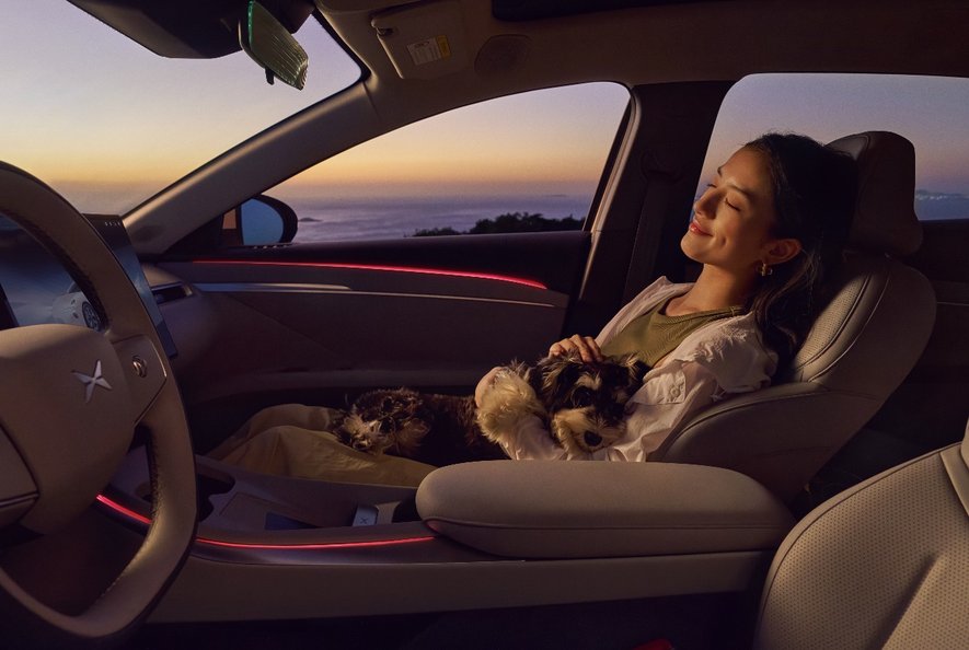 小鹏MONA M03内饰设计以驾乘者为中心,简约不简单,细节处融入多处贴心设计,兼顾年轻人的视觉享受和交互体验。人体工学云感座椅带来极致舒适的乘坐体验,内置的美颜 LED 柔光灯遮光板则为女性用户提供完美补妆环境。全系标配的隔热全景天幕,可视全景面积达1.22 ㎡,隔热防晒的同时,为用户带来更加开阔的视野和愉悦的驾乘感受。