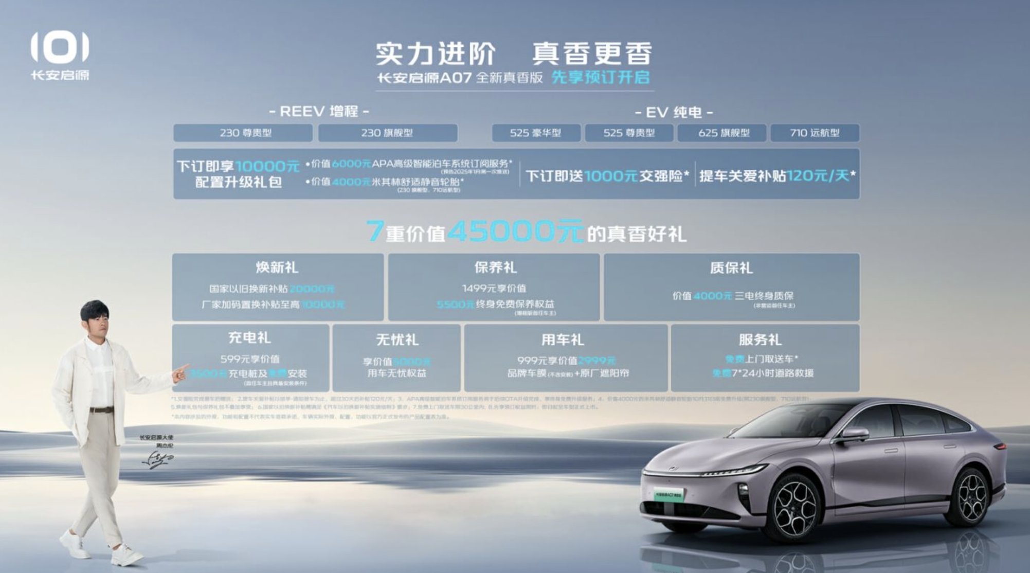 事实上,三大更香正是对动力、续航、数智三大进阶的最佳诠释,除此之外,长安启源A07全新真香版还实现了品质进阶和安全进阶。