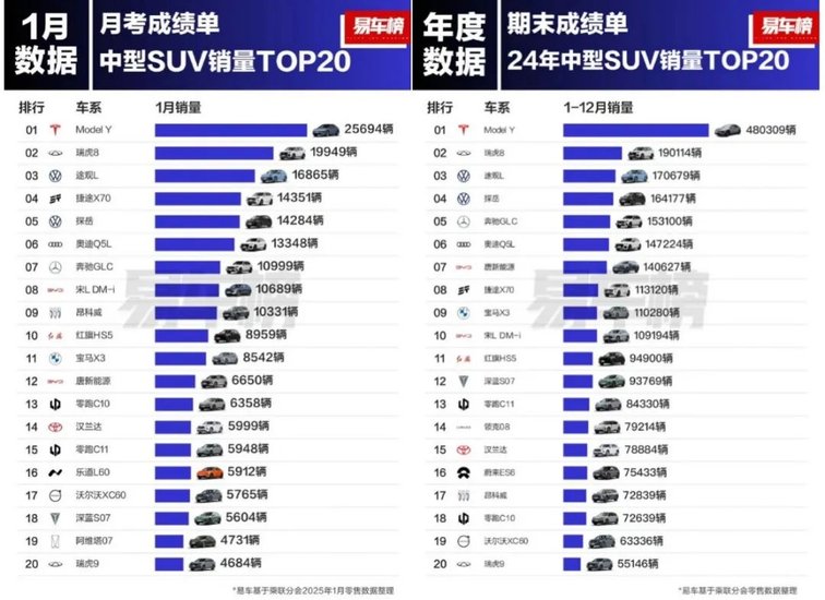 近日特斯拉宣布将于2月底开启焕新Model Y的全国交付。同时,据易车榜统计数据显示,2025年1月,特斯拉Model Y在中型SUV市场持续领跑,以累计销量超2.5万辆的成绩稳居销量冠军,远超奔驰、宝马、奥迪等传统豪华品牌燃油车型。