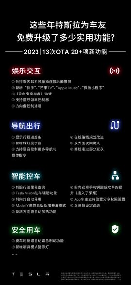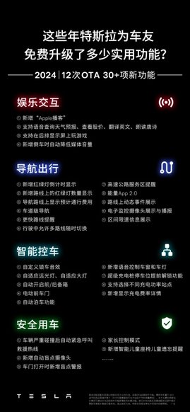 特斯拉官方日前发布统计数据,从2022年的20+项新功能,到2023年的更多智能体验,再到2024年的30+项重磅上新,娱乐交互的丰富、导航出行的精准、智能控车的贴心、安全用车的保障,每一次OTA远程软件升级,都让你的特斯拉更安全、更智能、更便捷!