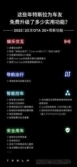 特斯拉除了在能源形式上让车辆使用成本得到了革命性的降低,还通过智能化不断提升车辆使用价值革新。让车可以和手机一样,通过OTA空中升级,终身一键免费变新车。