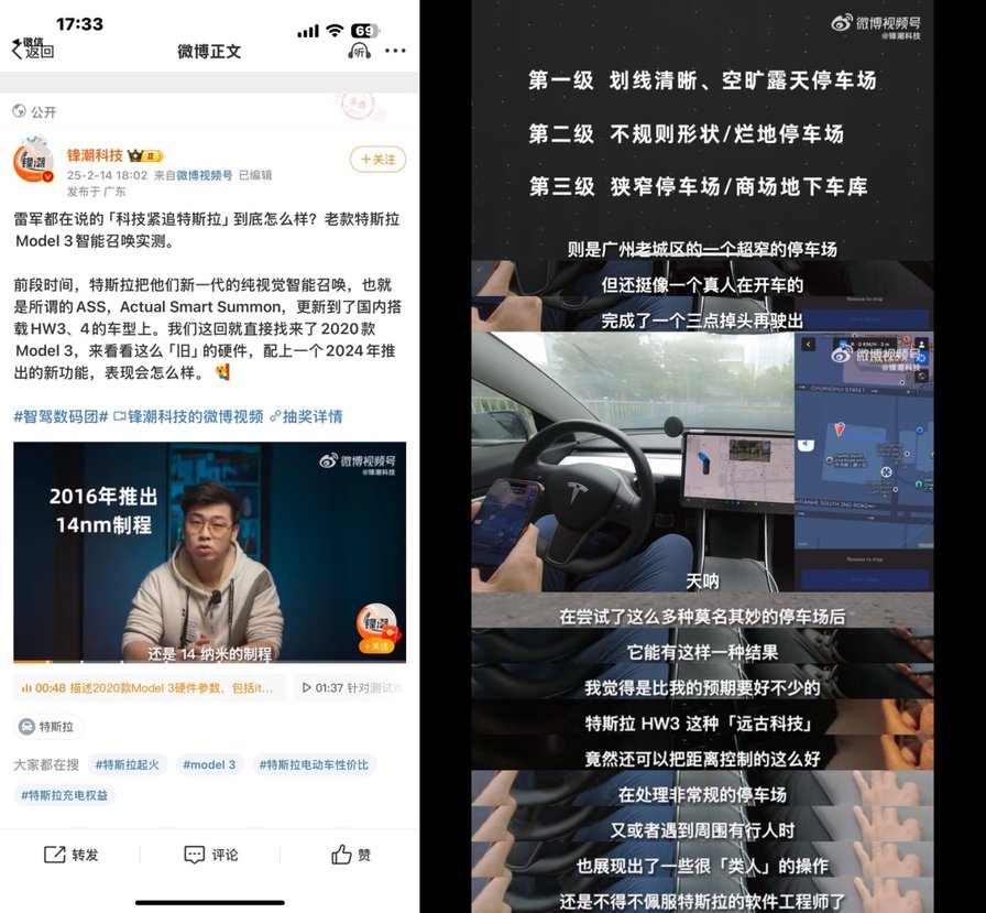 近期科技博主@锋潮科技 进行了老款Model 3智能召唤实测,在面对多重挑战下,这台Model 3 用“老旧”的硬件顺利完成挑战,让人“不得不佩服特斯拉的软件工程师”。
