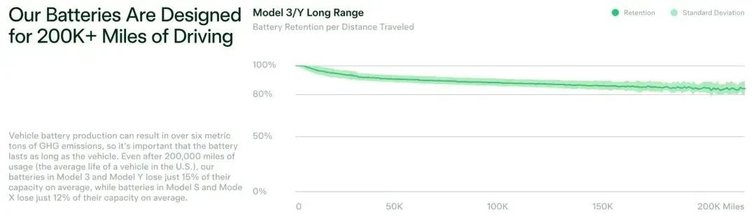 根据特斯拉《2023年影响力报告》的统计数据,即使在行驶了20万英里(32万公里,相当于绕地球赤道8圈)之后,Model 3/Y的电池容量仍保持在85%,而Model S/X的电池容量保持在88%。