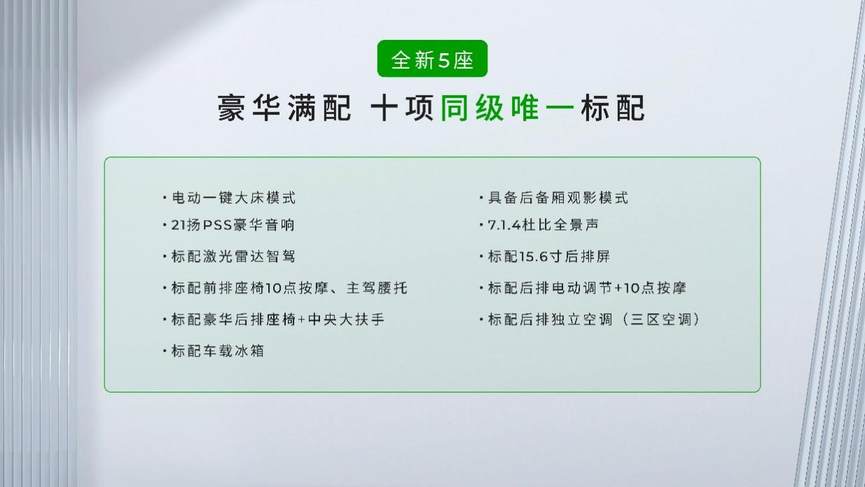值得关注的是,5座版还推出专属“菱境”座椅纹路设计,将源自欧洲贵族马具和传统豪华品牌使用的菱格纹绗缝工艺重新解构,打造如艺术品般的几何秩序美学。全新5座不仅是座位精简,更是将空间自由度与舒享配置推向极致。