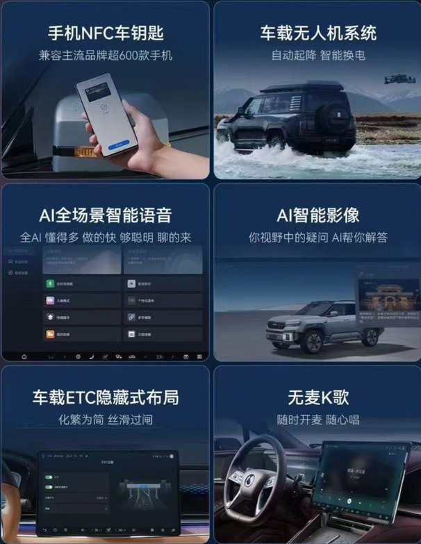 易三方:基于三电机独立驱动技术、后轮双电机独立转向技术、VMC整车运动控制技术、全系CTB电池车身一体化技术四大核心技术,打造多项全球首创与全球领先的功能,并打造极致转向、圆规掉头、易三方泊车、低附路面增稳系统、智能蟹行五大标志性核心功能,带给用户超安全、超灵动、超智慧、超澎湃四大核心体验。此外,易三方行业首发整车智融合端到端大模型,打造无与伦比的智电新体验。