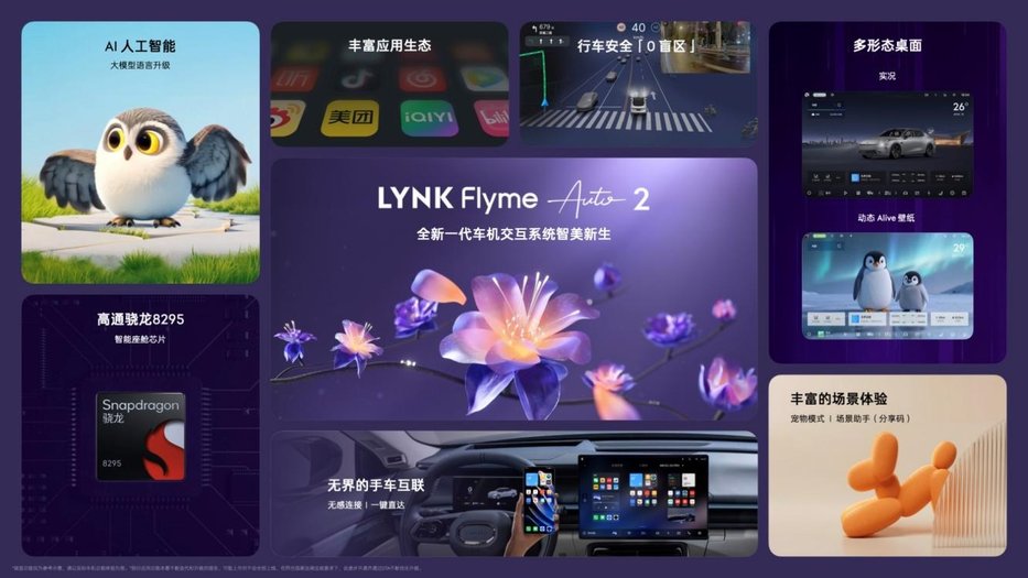 此次发布的全新领克07 EM-P,提出了入门即高配,搭载LYNK Flyme Auto 2系统,采用灵动桌面卡片与双小窗模式设计,简化交互层级,更易获取关键信息;配合算力强大的高通骁龙8295芯片,无论是多应用同开还是界面切换。