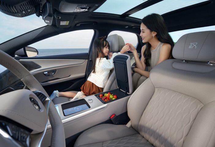 舒享配置上,智能冷暖冰箱拥有4.5升容积,支持-6℃至50℃宽温域调节;ANC主动降噪技术配合双层隔音玻璃以及全车近90处隔音材料;特别开发的智能防晕车系统可全方位解决用户晕车困扰。
