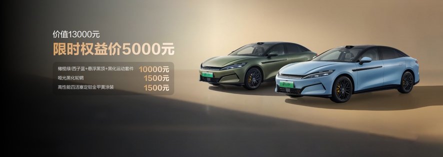 在产品之外,比亚迪特别推出丰厚外观限时选装权益。汉L原价13000元的外观套装(含橄榄绿/西子蓝车色、悬浮黑顶、黑化运动套件、哑光黑化轮辋、性能四活塞定钳金甲黄涂装),限时权益价仅需5000元!购车还可享高达15000元的超级置换礼。(以上权益截至12月31日)