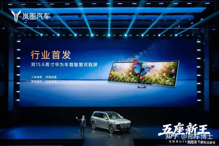 深刻洞察市场新风向,岚图泰山X8携“五座新王”越级实力,为中国主流家庭更高的品质生活而来。它行业首发鸿蒙座舱5.2、华为双15.6英寸双联屏,拥有6.1平方米中国五座SUV最大座舱面积、五座SUV唯一的二排双享零重力座椅,同时还搭载行业首创的揉捏式机械按摩座椅、行业唯一的全自动一键成床功能、行业领先的896线双光路图像级激光雷达和华为乾崑智驾四激光雷达方案、中国第一的三腔空悬+EDC魔毯技术,多项行业首创与全球领先的硬核技术和配置,定义王者实力,重塑下一代五座SUV的价值标准。