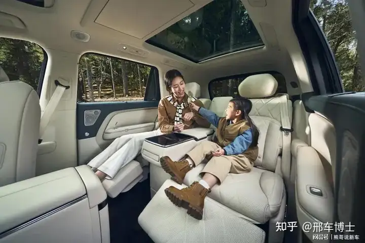 百变座椅,支持三座、四座、五座三种模式自由切换。坐进二排右座,语音即可开启大三座模式,即刻享受沉浸式SPA体验。行业首发揉捏式机械按摩座椅,支持全身32点按摩,12个机械按摩球头深入腰部肌肉层,一天的疲劳顿时全消。放下二排中央扶手,即是大四座模式,独立头枕音响、21.4英寸3K超清吸顶屏、29扬声器VOYAH Sound殿堂级音响与13L智能冷暖箱联动,全家共享私享巨幕影院。坐车如做SPA,观影如临其境。