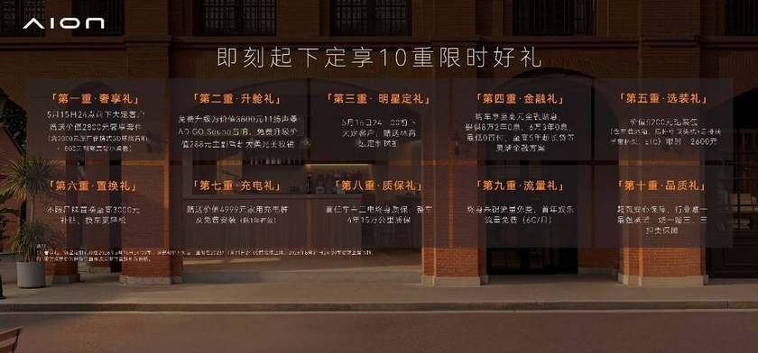 埃安N60还同步推出10重限时上市权益,诚意全面拉爆,包括:下订赠送价值2800元奢享套件(便携式3D环绕音响+副驾小桌板)、免费升级11扬声器ADiGO Sound音响及柔光美妆镜、赠送林高远定制球拍、至高5000元金融贴息(含8万2年0息、6万3年0息等)、价值5200元选装包限时半价、不限品牌置换至高3000元补贴等。